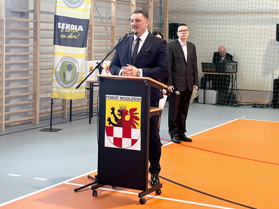 Hala powstała dzięki staraniom i zaangażowaniu Starosty Mogileńskiego Tomasza Krzesińskiego oraz Zarządu Powiatu
